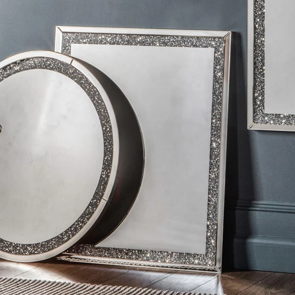 Add a dash of modern glamour to your home with this stunning Anton wall mirror. Its sleek silhouette and clean lines add to its sophisticated appeal whilst the glass box frame filled with clear jewels adds a bright and luxurious touch. This statement mirror will bring in light and depth into any room, whilst offering a useful place to check your reflection. It can be hung horizontally or vertically to suit your space.