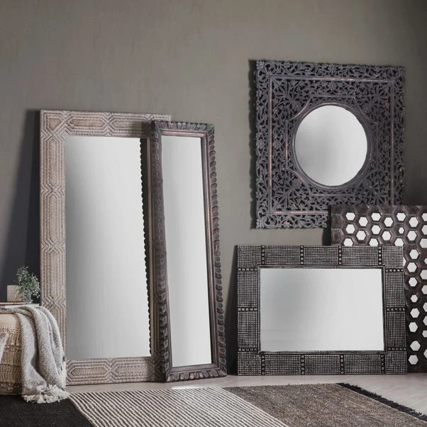 Our bohemian style leaner mirror will look stylish in any room. This mirror can also be hung up using the D ring fixtures, the weight of this mirror is 30.9kg.