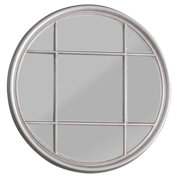 Full of grace, the Ezio round mirror is certain to make for an ideal addition to any home setting. This mirror combines both elegance and industrial décor together by featuring a versatile panelled window mirror, available in a distressed matte cream finish and subtle silver finish. Create more light and space in your home with this ornate mirror.