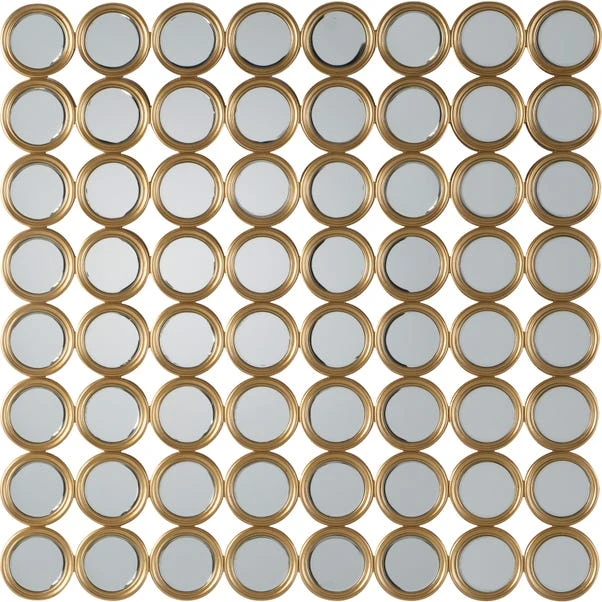 Add a statement piece to your home with this unique large accent mirror. The Larysa features 64 small circular mirror segments mounted in a luxurious gold finish frame, creating a stylish focal point in any room.