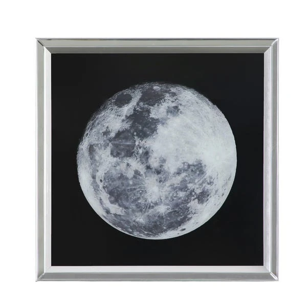 Bring the outer space into your home with the Lyra Study Mirrored Art, a compared square shaped wall hanging fill with charm and wonder. Featuring a moon design with silver foil edge and placed onto a deep black background, this piece is finished with a bevelled metallic frame for a stunning and complete look.