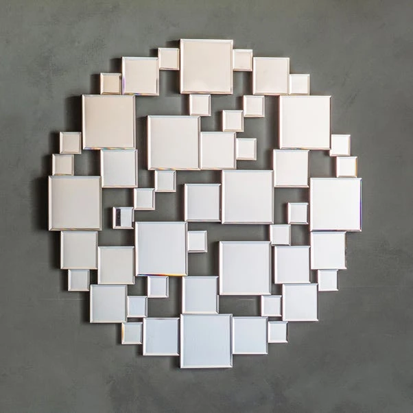 This stylish and contemporary Rokuro round mirror will make a statement in any space, compiled with small square mirrors to create a circular design. This gorgeous piece emulates a sculptural piece of wall art, perfect for dressing any wall in your home.