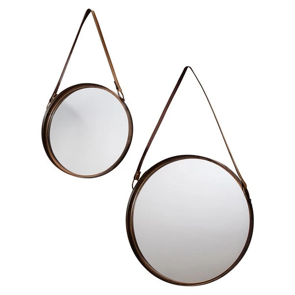 Add beautifully rounded mirrors to your home to elevate your home style with the Elkton Mirrors. Crafted with faux leather hanging straps and features an industrial design for a stunning contemporary appearance. The wall mounted Elkton Mirrors are a perfect way to inject a modern yet classic touch to your home decor.