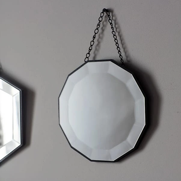 Transform a dull and empty wall with the stylish and striking Set of 3 Raphine Scatter Mirrors. With a thin black frame and chain detailing, this set of modern mirrors will create an eye-catching and coordinated addition to your home.