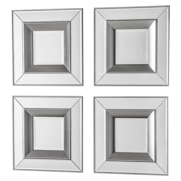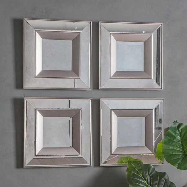 Bring the Set of 4 Monto Square Mirrors into your home for a coordinated and synchronised look amongst your home décor. Featuring bevelled mirror pieces with a silver finish surround, and inset for a double frame effect, this set of mirrors has been designed with specific details for a stylish and superb outcome and looks excellent when displayed together as a piece of wall art. This mirror is available in other mirror variations for a coordinated look.