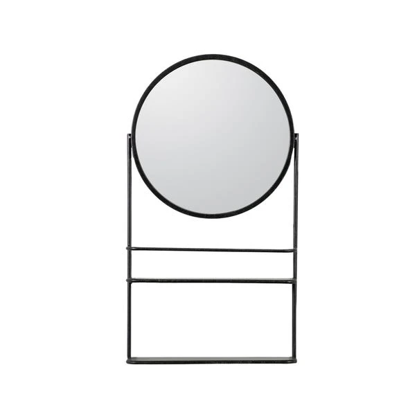 Style out your space with the compact and functional looks of the Taylor Mirror. Made with a dark frame and a useful storing element, this piece would sit perfectly in a bathroom or small vanity space as it allows you to display and store various ornaments or accessories.