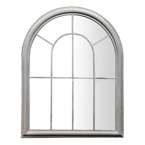 Reflect in nature with the simple, grand styles of the Trieste Outdoor Mirror featuring a window design in a painted grey finish frame. The arched top and bold shape adds a new dimension to any outdoor space.