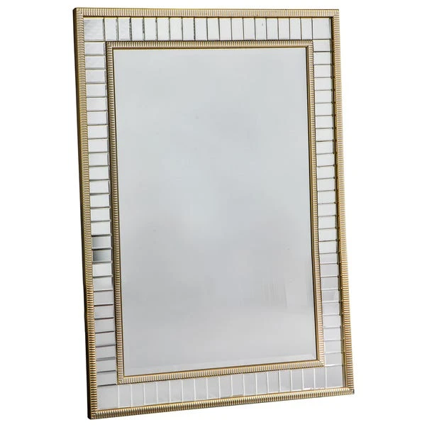 Introduce a stunning rectangular shaped mirror that is perfect for any home style. The Vernon Mirror features captivating Beveled glass with a double gold edge frame for a contemporary appearance. A free standing mirror that is fanatastic for injecting a modern touch to your home decor.