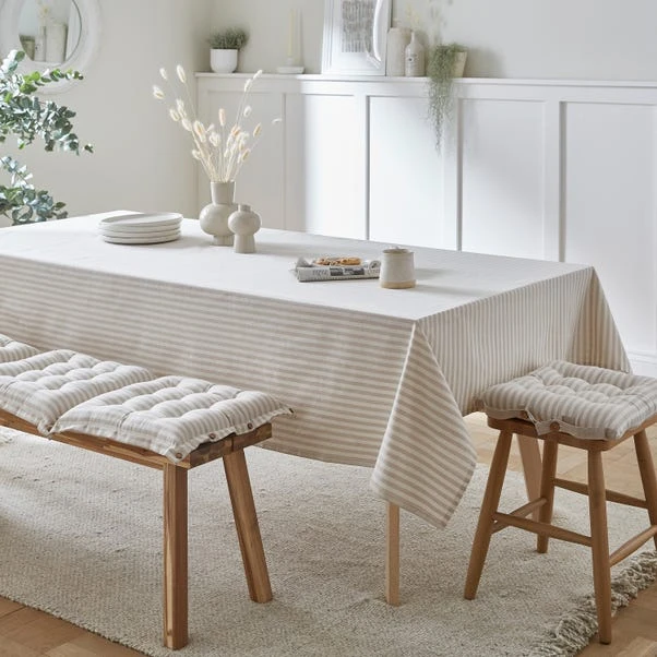 The Linford Button Seat Pads are both a stylish and practical solution for a more comfortable and cosy dining experience. Supplied in a pack of 2, this seat pad has been made with a 100% cotton fabric with a timeless striped design and comfortable polyester filling. These seat pads also come with button attachments, allowing you to connect multiple to form a bench pad if needed.