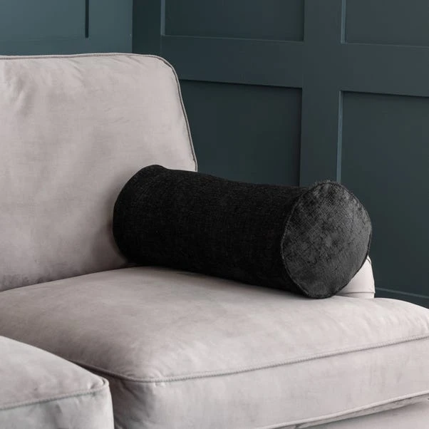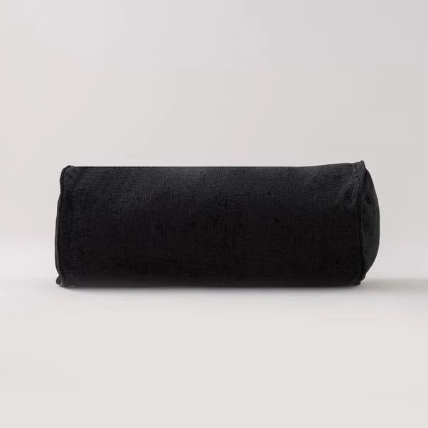 Fashioned from a sumptuous chenille fabric, this bolster cushion in black is perfect for adding a hint of luxury to your décor. Filled with a plump recycled polyester fibre filling, this cushion will offer you support and comfort while relaxing in your home. The bolster shape is ideal for layering with other colours and textures for a personalised look and features stylish piped edge.