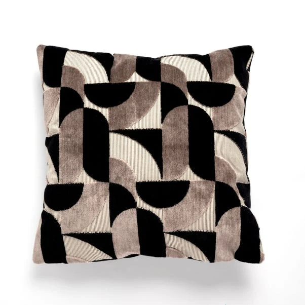 Dunelm Curves Cut Velvet Geometric Black Cushion