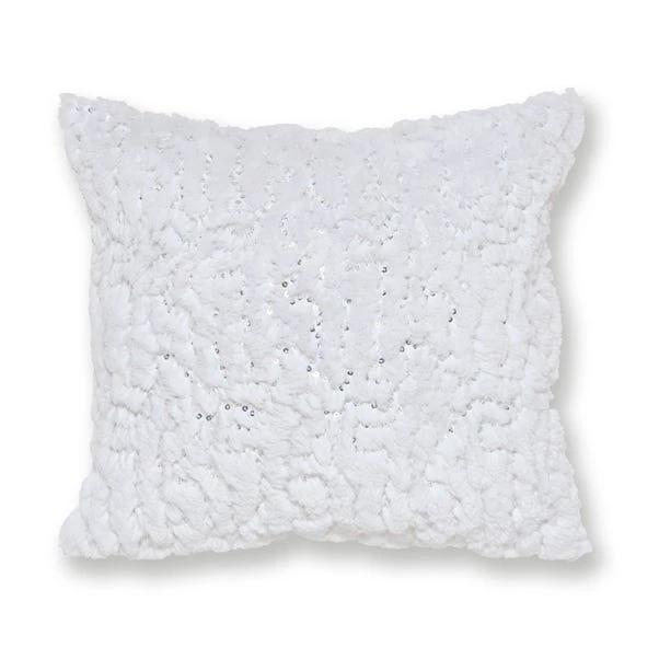 This cushion features a white sequin design with a faux fur finish.The removable cover is made from 100% polyester that is machine washable and comes with a 100% polyester filling.
