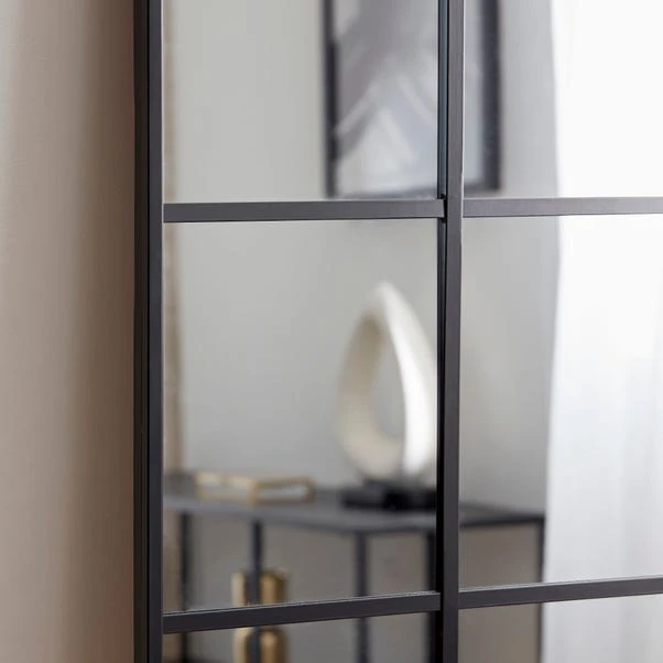 Offering a gorgeous windowed design, this stunning black lines leaner mirror features a black frame, perfect for adding a modern contemporary touch to any room. This window mirror is full length and has the stability to simply lean against a wall or it can be wall mounted using the keyhole wall hooks provided.