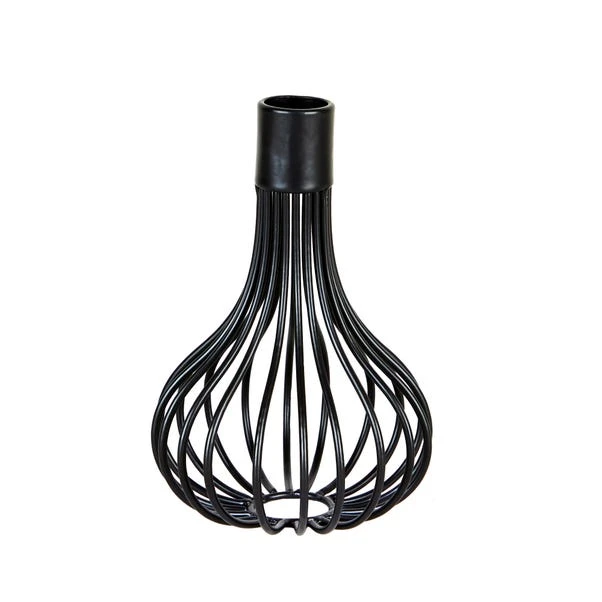 Made from iron, this stylish and modern wire candlestick holder is perfect for adding a contemporary feel to your home. In a matte black finish, this candlestick holder fits most candles and is very easy to clean. Other coordinating black wire home decor items are also available.