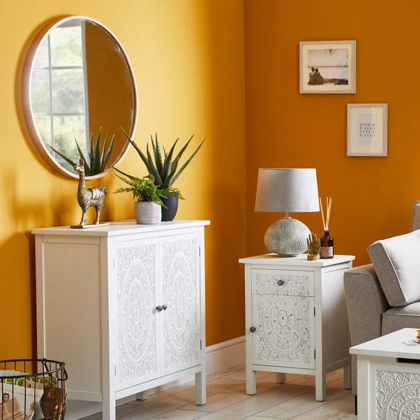 Designed by the contemporary brand Elements, this round ochre wall mirror features a simple, minimalistic design.