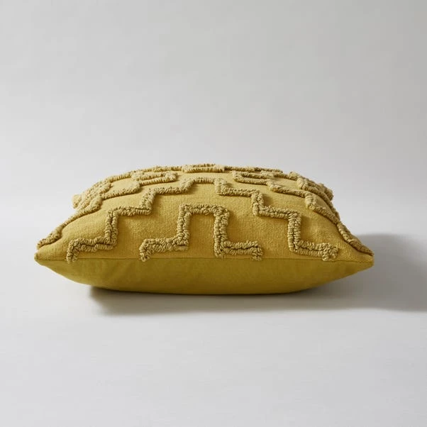 Featuring an intricate loop tufted geometric design, this stylish cushion cover is finished in a choice of mustard and olive colourways. Made from 100% recycled cotton and polyester, this detailed cushion will bring a stylish touch to any room.