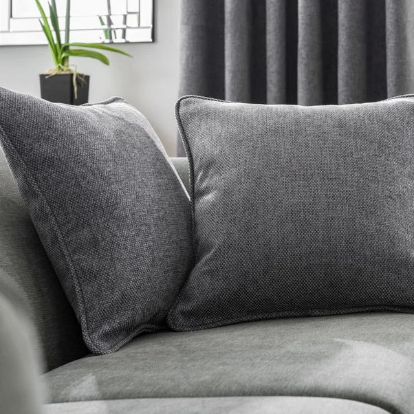 Fashioned in a versatile grey tone, this luxurious cushion is crafted from sumptuously soft chenille yarn and features piped edging for a sophisticated finish. Ideal to coordinate with the Oxford curtains, this cushion is filled with plump and durable polyester hollowfibre and features a removable cover for easy care.