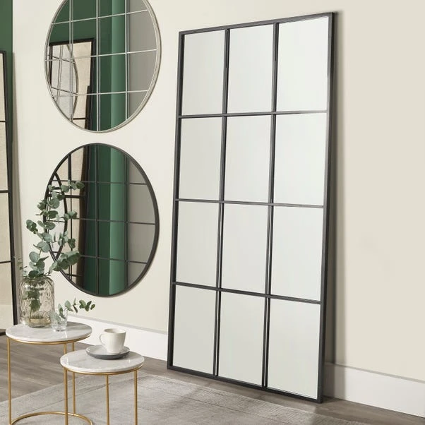 Make a bold statement with this gorgeous and grand Floor Mirror, featuring a durable iron frame, a strong free-standing structure and a dark grey finish. With a 12-pane window style design, you can rely on this piece to fill an empty space and capture the attention of your house guests.