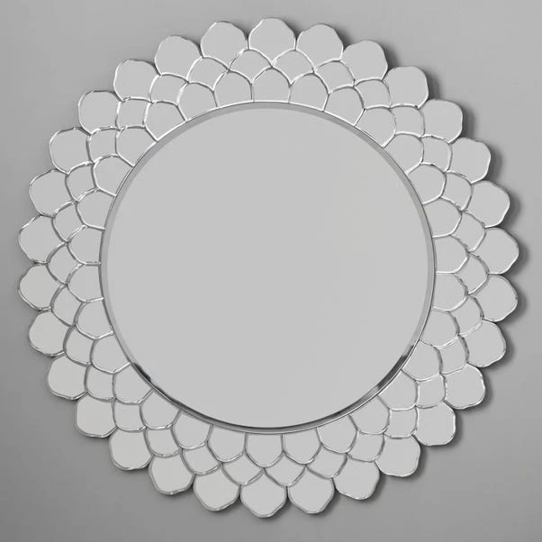 Showcasing the unique and striking looks of the Clear Layered Glass Round Wall Mirror, great for creating a statement and adding a modern touch to your walls. Designed with crisp cut glass edging and overlaying glass details, this petal design mirror will complement an array of decorative styles with its outstanding structure and beautiful design.