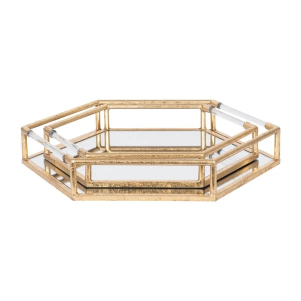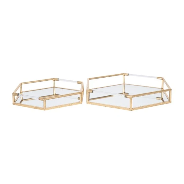 Pacific Lifestyle Set Of 2 Metal & Mirrored Gold Trays