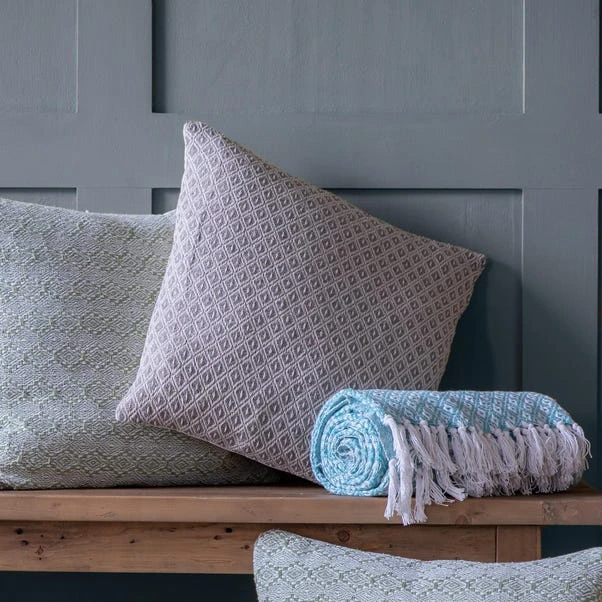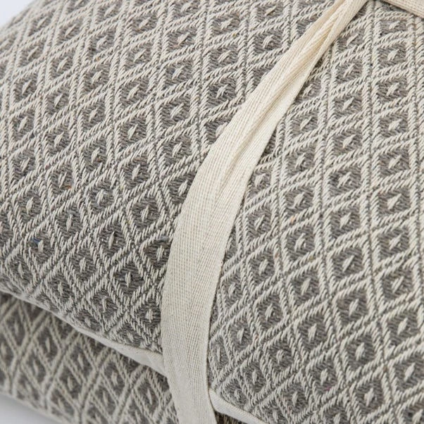 Featuring a pair of striking geometric patterned cushions made from recycled cotton and available in a warm taupe or bright blue colourway to suit your style. Filled with a plump polyester filling, this square shaped cushion will add a decorative and comfortable touch to your home décor.